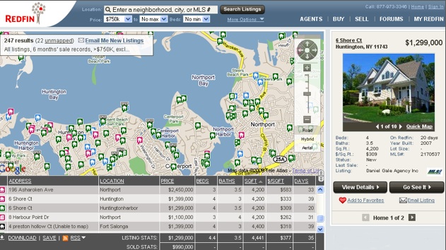 The real estate slump is still dragging the economy down, but real estate sites that can help people save money or cut down the time it takes to find a decent home are still hanging on. Today, regional online brokerage Redfin is expanding into parts of New York for the first time, including Westchester, Long Island, and Queens (Manhattan and Brooklyn still remain beyond its reach). And in California, it now covers Sacramento and the Central Valley. These will be added to its existing markets of Boston, Chicago, Seattle, Washington DC, Baltimore, and the San Francisco Bay Area.