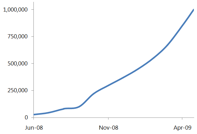 Dropbox, the Y Combinator and Sequoia-funded file synchronization startup that makes it easy to share files across multiple computers at once, just hit a major milestone: it now has over 1 million members. And as the graph below shows, much of that growth has come in the last few months, with over 900,000 signups since the product’s public debut at TechCrunch50 last September.