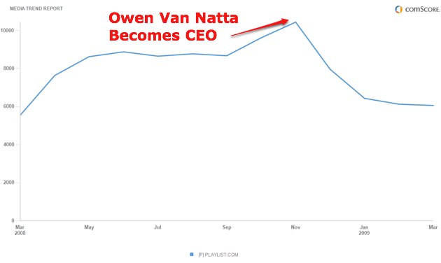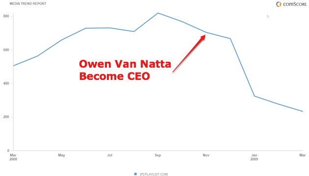 One of the many unsavory aspects of the hiring of Owen Van Natta as the new CEO of MySpace: the rewriting of recent history around Van Natta’s involvement in Project Playlist. The communications group at News Corp. (MySpace’s parent company) is busy spinning Van Natta’s departure as a simple transition from one job to another, but that’s far from the truth. Nor does their story take into account the sad state of the company that he ran for just a few months before leaving for greener pastures.