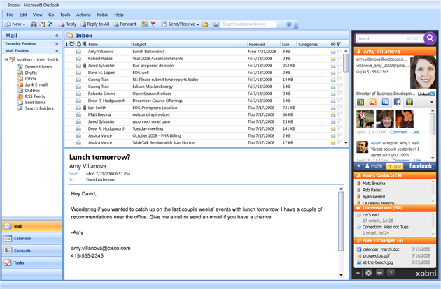 With the news that Facebook is going to begin allowing developers to incorporate full streams into their applications, developers are scrambling to get their apps up to speed. This morning we got our first look at the upcoming new version of Seesmic Desktop, and now we’ve learned that Xobni, the popular Outlook plugin that helps make Email easier to manage, will be going live with a new upgrade beginning at 6 PM tonight. Because of the way Xobni is built users won’t have to download an upgrade either – all changes will be server side.