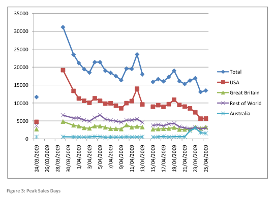 Firemint has gone to great lengths to record its data, but it isn’t quite comprehensive – apparently the studio forgot to download its reports from Apple on a couple of days, and there’s no way to get them now. Still, this is probably the most detailed set of data to be released by a top developer to date.
