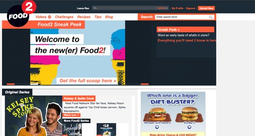 The Food Network just launched a saucy new site, Food2, aimed at engaging a younger generation of cooks and foodies through blogs and video content. Scripps Network, which owns the Food Network, also recently launched a recipe aggregation site, which we reviewed here. Food2 is a flashier, more hip FoodNetwork.com (Food Network’s site) that features and outspoken, “eclectic slate of food bloggers” aimed at the twenty-something crowd who favor appetizers and cocktails.