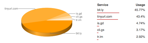 Well, that was fast. No more than a day or two after Twitter switched over to bit.ly as its default link shortener (from TinyURL), bit.ly is now the most popular URL shortening service. According to statistics published by Tweetmeme, bit.ly now accounts for 46 percent of all the short URLs on Twitter over the past 24 hours, while TinyURL’s share is down to 43 percent. Just over a month ago, TinyURL had an overwhelming 75 percent share to bit.ly’s 13 percent share. According to Tweetmeme, bit.ly overtook TinyURL sometime last night.
