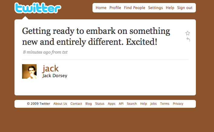 Almost immediately following Twitter coming back from a planned downtime this afternoon, co-founder and current Chairman Jack Dorsey sent out a tweet letting his followers know that he was, “Getting ready to embark on something new and entirely different. Excited!” Dorsey is getting ready to launch his next startup, he’s confirmed to us. As the guy who actually invented Twitter, this is notable.