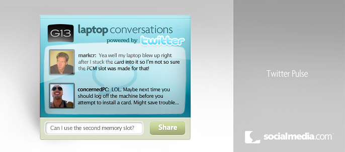 SocialMedia is also offering a product called ‘Twitter MegaPulse’ that allows brands to create entire microsites dedicated to their customized feeds. And finally there’s ‘Twitter Sparq’, which allows brands to syndicate ads to Twitter clients, inviting users to tweet about a particular product (which would then likely show up in their Twitter Pulse).