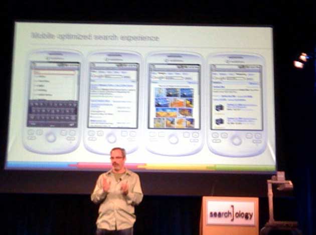 Mobile search is growing faster than PC search, he says. It’s the primary way some people access the Internet. And it is inherently local, knows where you are and is with you wherever you are. But there is a challenge with devices – there are hundreds of them with widely varying capabilities. Search is generally difficult to use. Keys are small, or no keys at all.
