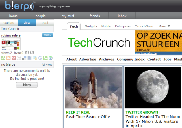 The web application it’s introducing today is dubbed Blerp, and its ambition is to turn the Web into a giant interactive message board by making it possible for visitors to add text comments and multimedia to existing web pages and share them with their friends.