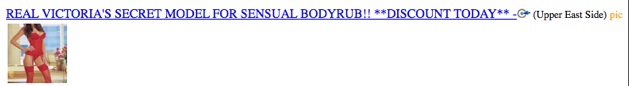 A quick glance at the erotic services section for New York City shows a lot of flesh with ads promising “IT’S NOTHING LIKE THE FIRST TIME!!” and “ASIAN HOTTIE . . . TO FULFUILL YOUR DREAM . . . WILLING AND READY.” Meanwhile, the adult services section for NYC is slightly less explicit. It has a lot more listings for “massages” and “sensual bodyrubs.” The first screenshot below is from an adult services ad, the second is the erotic services page. So much for truth in marketing.