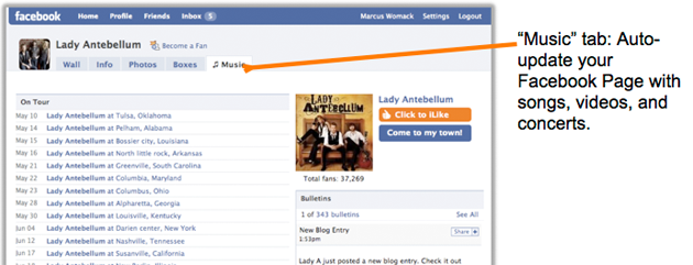 One of the most significant changes is the release of a new ‘Music’ tab for an artist’s Facebook pages, which will allow them to incorporate their music, videos, and concert information (previously artists would have to rely on the iLike Facebook application). The service has also expanded its support for Twitter, allowing artists to import their Tweets from elsewhere and distribute them to their social network profiles, or to syndicate them directly from the iLike dashboard.