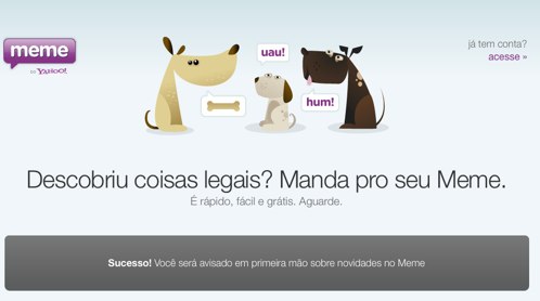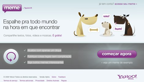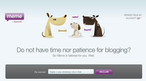 We’ve heard that Yahoo may be unveiling a Twitter clone called Yahoo Meme. According to our tipster David Ruiz’s blog (it’s in Portuguese, here’s the translated version), Yahoo is inviting users to test out the alpha version of a competitor to Twitter. Translated to English, the front page of Yahoo Meme says “Do not have time nor patience for blogging? So Meme is tailored for you. Wait” Yahoo Meme’s mascot is a dog instead of the Twitter bird.