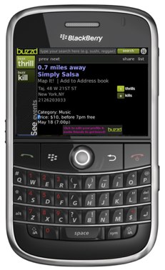 With this app, users can browse and search continuously updated event feeds, which include pricing, location, and event details, and access ratings and reviews on restaurants and bars. buzzd aggregates information from other event and review sites including Citysearch, Flavorpill, Time Out, MyOpenBar, last.fm, and Clubvibes. User-generated feedback from the buzzd community for “real-time” activity about events, restaurants and bars is also included in the mashup of information.