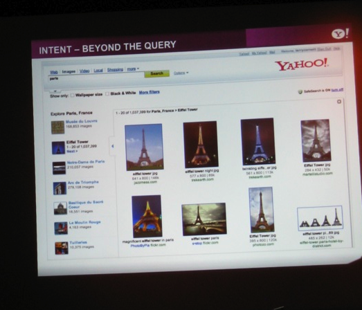 There’s a clear theme already in this presentation: Search is shifting away from links to intent, according to Yahoo. And it’s moving from just pages to objects. They don’t just want to serve up a series of static results based on a word, but rather want to leverage the data they’re collecting from products like Search Monkey and mobile search to figure out what people are actually looking for.