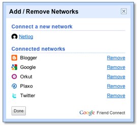 Google’s integration with Netlog lets users sign into sites and blogs using Friend Connect with their Netlog ID and password. Users can use their Netlog profiles on the site, invite other Netlog users to join Friend Connect, and also share their Friend Connect activity with friends on Netlog. On the back end, Google uses standards like OpenID, OAuth, and OpenSocial technologies to enable Netlog and other social networks and sites to plug into Friend Connect.
