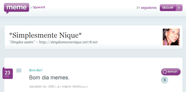Here’s how it works: you create an account with your preferred username (Yahoo profile required), and you basically start off with an empty blog that you can fill with text, images, videos, music or a mixture of those media. All you can add to your blog – apart from the content – is a title, a 100-character description and an avatar. You can visit my account here. There are no other settings for customizing your Meme blog, at least for now, and so far there is no way for people to create a comment thread underneath the content you post nor for you to share your posts other than a dedicated URL that points back to the update.