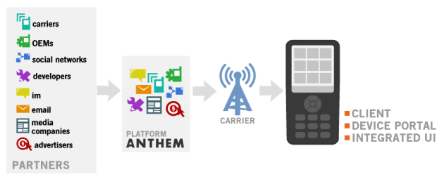 According to Intercasting, carriers currently using the ANTHEM platform include 3, Alltel, AT&T, Bell Mobility, Boost Mobile, Sprint, T-Mobile, Verizon Wireless, Virgin Mobile USA, and many more. Intercasting is also the company behind Rabble, a mobile blogging and social networking application.