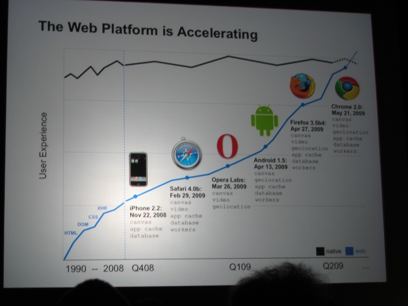 The theme of today is pretty clear: The time for development on the web has arrived. With HTML 5, the ability to create rich browser-based applications is here. Google’s Vic Gundotra has laid out the five key things for HTML 5 that will change things: Canvas, Video, Geolocation, Database and App Cache, and Web Workers. More details on all of those in my live notes below.