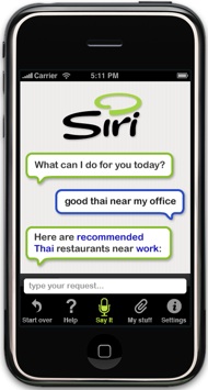 “Siri deals with the hassle of accessing multiple sites to explore options, make choices, get reservations and buy tickets. It saves your favorites, keeps track of your bookings, and helps you remember what you liked about a place or event. It helps you invite your friends to things you arrange with Siri. It does things that a personal assistant would do for you using the Internet.”