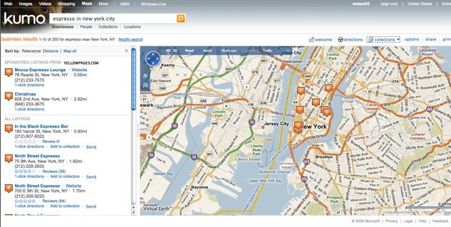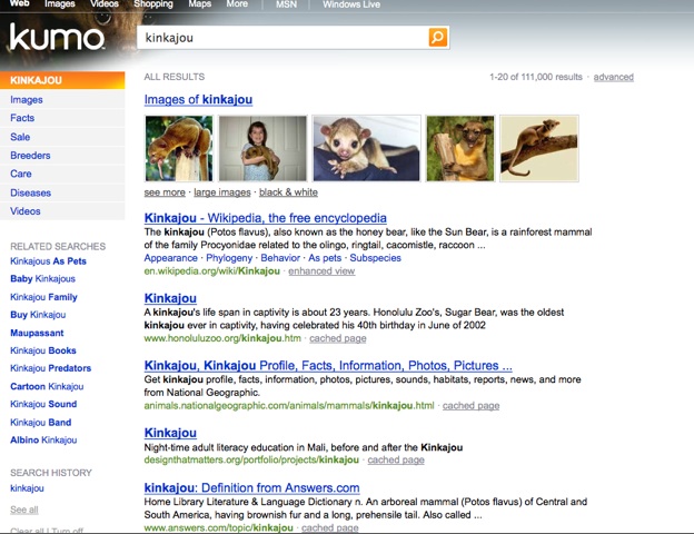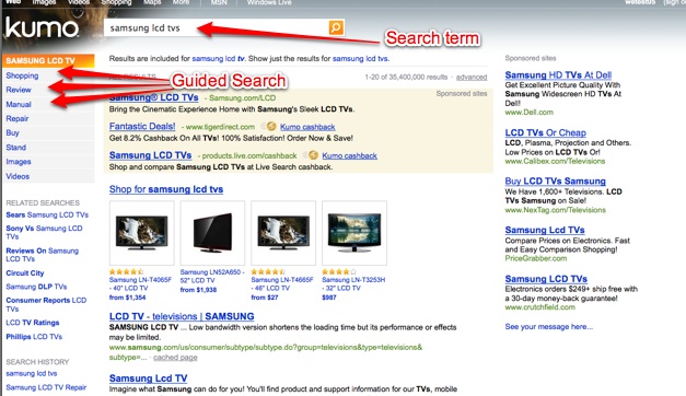 Every search also generates a guide on the left to help you refine your search. A search for “kinkajou,” for example, lets you refine by images, facts, sale, breeders, care, diseases, and videos. A search for “Samsung LCD TVs” brings up an entirely different set of guided results: shopping, review, manual, repair, buy, stand, images, and videos. If you search for images of “butterflies,” it lets you sift to show just Monarch, Swallowtail, Viceroy, Owl, and other types of butterflies. All of this categorization and concept-matching is Microsoft’s early attempt to bring in some basic semantic search technologies into a mainstream search engine. Each guided option is dynamically generated, just like the different sections of the search results page. “Google, tried to preempt this,” says Mehdi, referring to Google’s new search refinement options it launched last week, which is also in the left pane. Those Google options, which include the ability to search across different time periods or for related keywords, are “completely static,” criticizes Mehdi. “There is nothing new about it. It is a very minor rev, not as sophisticated as what we are doing. For us ever query is special.”