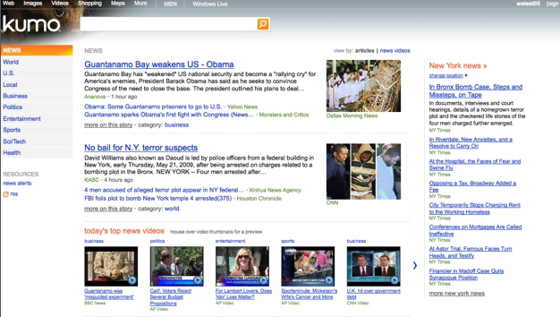 I’ve been playing around with a preview version of Bing for about a week. It is designed to be “more of a decision engine,” says Mehdi. Bing helps people make decisions through guided search and a focus on task completion. In a time when a new Website is created every 4.5 seconds, information overload is becoming a real problem. ” People are getting hundreds of thousands of links but not getting what they want,” says Mehdi. Bing tries to alleviate problem by offering up different experiences depending on the search. It also acts more like a destination site for certain searches. Travel and product searches bring in comparison pricing, reviews, images, and more. Hulu videos can be played within the video search results. Bing pulls in data from other Web services when it can so that you often don’t have to leave to get the information you want.
