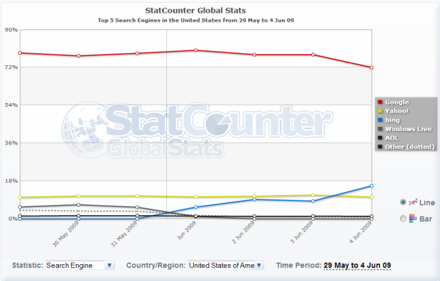 Data from monitoring service StatCounter suggests that Bing, Microsoft’s new