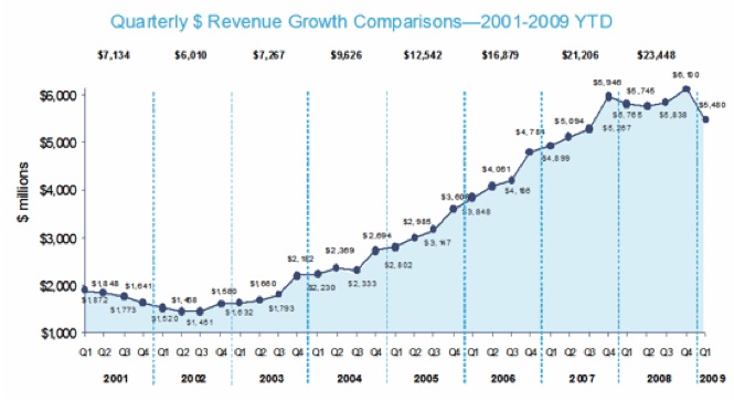 Does one down quarter make a recession? The typical rule of thumb is two down quarters in a row, but that is for the economy as a whole, not for individual sectors. I guess we can wait to see what happens in the second quarter. The worst might very well be behind us. Or not. Either way, online advertising is hurting and seeing not just slowing growth, but actual dollar declines. Without a pickup in the general economy, online advertising will continue to sputter. Who thinks the second quarter will bring another decline? Who thinks it will show a rebound?