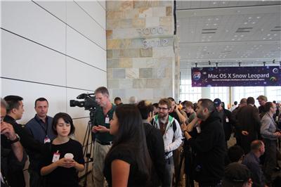 - 12:13 PM: Greg Kumparak Looks like broadcast guys get to go in first, then the rest of media, then general WWDC goers.