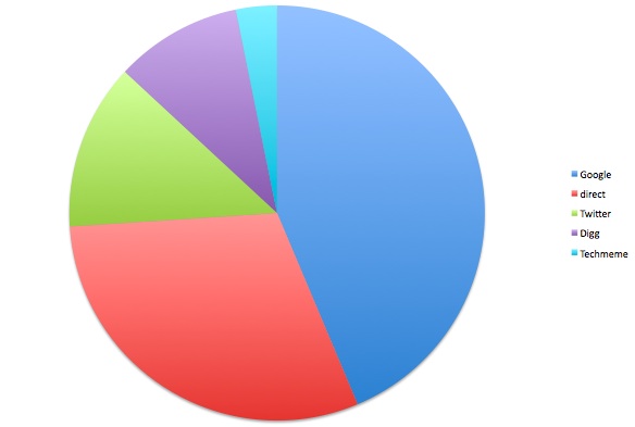 Looking at our Google Analytics numbers, here is the breakdown of visits to TechCrunch by source over the past 30 days: