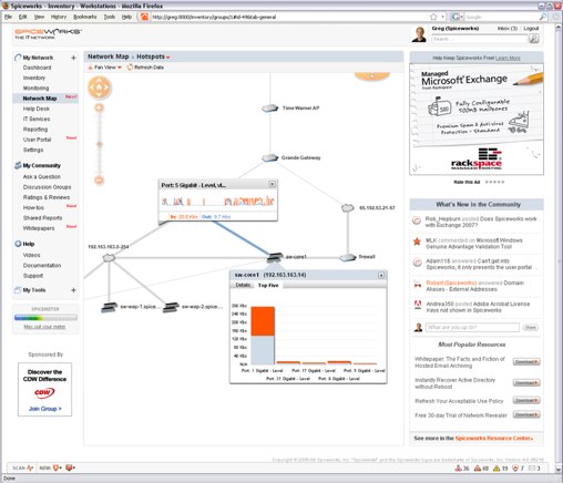 The interesting part of Spicework’s software is that it includes a social network for IT pros that they use to help each other out. Its product roadmap is visible to all members, who can vote on which features they want to see next. The top feature, which will be in the new release, is a network map, visually showing every computer and network device on a company’s IT network, along with their relationships and bandwidth consumption. Spiceworks will be integrated with Twitter as well, allowing activity updates to be published to Twitter.
