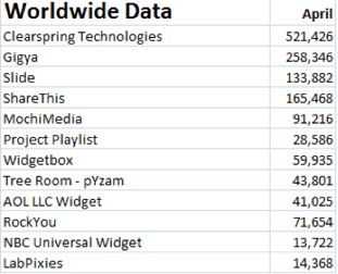 We also received these comScore numbers of uniques for April 2009 for most of the widget producing platforms: