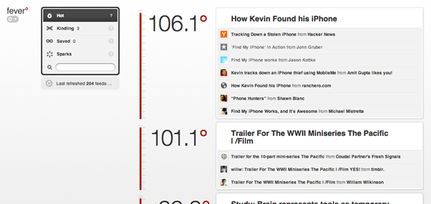 Fever is a hot new RSS reader that aims to cure “second inbox syndrome, unread item guilt, and unbold elbow.” In other words, the common plights of the modern RSS power user.