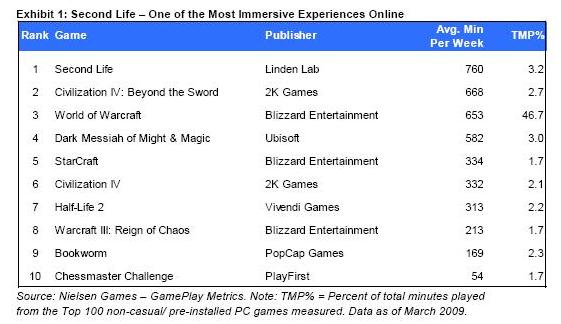 First of all, you may be wondering if anyone is still using Second Life at all. The answer is yes, and users are very active on there. During the past 30 days, one million users logged in, according to Second Life’s own statistics. In average time spent per user per week, Second Life in fact trounces all other MMORPGs, including World of Warcraft and Civilization IV. In another testament to the service’s apparent stickiness, the number of hours users spend on Second Life has been increasing steadily and is currently at historic highs, totaling approximately 124 million hours in the first quarter of this year.