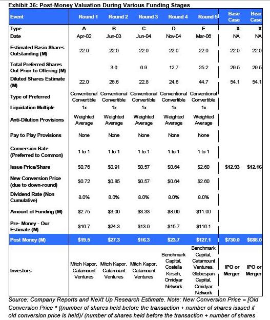 If you’re interested in the virtual worlds or Linden Lab in particular, there’s a ton of information and speculation about the market to be found in the report, even if we focus mostly on the financial side of things. To conclude, here are two charts from the report, one on the estimated valuations based off of different calendar years and one on the post-money valuations after the various funding rounds raised by the company.