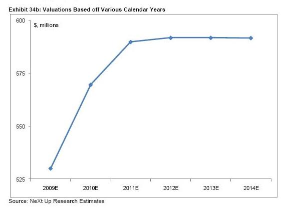Next Up defends the 7x multiple variable by referring to a two-year-old M&A deal. When Disney acquired Club Penguin for $350 million in cash back in August 2007, it paid out at least a comparable multiple based on Vlub PEnguin’s projected revenue for the year (between $50 and $65 million), despite the fact that it reaches a narrower demographic profile. But things have changed since then: stocks have tanked, valuations have dropped, the IPO market has pretty much dried up and VC-backed liquidity is at a record low. So that implies a major discount, with a valuation between $300 million to $500 million, which is decent but not spectacular, assuming Next Up’s revenue projection is accurate.
