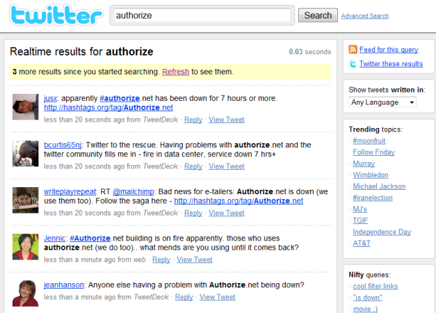 It’s unclear when the downtime started exactly, but the consensus is somewhere between 5 and 7 hours at this point (11 AM Eastern), with e-commerce vendors desperately looking for ways to contact the company or get any first-hand information about what’s going on and when the problems will be resolved. Twitter, meanwhile, is buzzing with the news as the United States wakes up (hashtag #authorizenet).