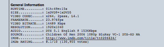 My one concern is that, in my experience, on a lot of the better handled Blu-ray rips have pretty high video bitrates. (Here’s Children of Men, a 1080p Blu-ray rip.) So I don’t know how high that number can climb before the device starts to choke. Video at 720p shouldn’t present any problem.