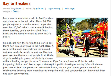 The Wiki system is working pretty well so far, but I’m worried about some of the problems that will arise as more people use the site. For one, most people don’t always agree on which restaurants or events are really ‘must-see’, which means that entries might skew towards being overly vague instead of singling out spots to eat. And if TownMe does begin to start gaining substantial traction, it would be trivial for restaurant owners to simply add their establishments to the page, which sort of defeats the point. That said, the site is still in early stages, and has plenty of time to fine tune its moderation systems.