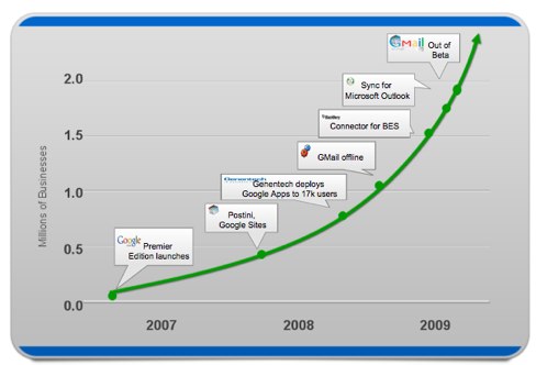 There’s no doubt that Google is making a big push to become a player in the enterprise space. Google currently has nearly two million businesses using Google Apps, which first launched in 2006, and hopes to grow that number. Google has been making a strong case for businesses to switch to Google Apps, especially focusing on convincing Microsoft enterprise customers. Google recently took the beta label off Gmail, Google Calendar, Google Docs, and GTalk, which is also part of its strategy to entice enterprise customers to switch to Google Apps.
