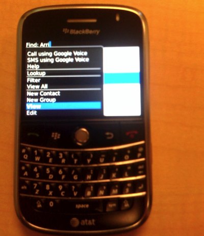 Two apps are being released tomorrow morning, for Blackberry and Android phones. The Android app is the most complete and takes over the native dialer, address book and call log. Users won’t be bothered with accidentally dialing numbers through the device phone number. The Blackberry app is less integrated, accessing only the native address book, and uses its own dialer. Users can’t simply go into the call log and return missed calls. They need to go back to the address book and select Google Voice to make the call. Still, it solves a big problem.