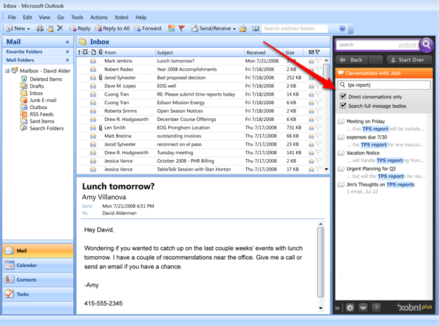 Xobni, a startup that looks to make your inbox a little less chaotic, is well known for walking away from an acquisition offer from Microsoft last year, not long after being publically complimented by Bill Gates. Since then the service has continued to grow, with over 2 million downloads in the last year and an avid user base. But until now, there’s been one big piece of the puzzle missing: a source of revenue. Tonight, Xobni is finally turning the cash-flow spigot to “On” with the release of a new upgrade to Xobni called Xobni Plus, which introduces a number of enhanced search features sure to be welcomed by Xobni faithful.