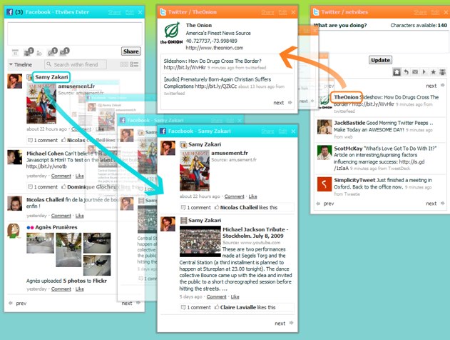 NetVibes, the startup that lets you assemble all your favorite widgets, feeds, social networks, email, videos and blogs onto a customizable homepage, is rolling out helpful “drag and follow” widgets for Facebook, MySpace and Twitter tomorrow.