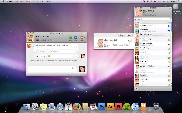 The Mac desktop client is nothing spectacular but it doesn’t hurt to have another decent, good-looking IM and social network aggregator application for Apple computers. The unified app supports connections via Facebook, AIM, MySpace, Google Talk (Orkut), Yahoo! Messenger, Windows Live Messenger (MSN), ICQ and more. Nimbuzz says its product for Mac is the only IM product to provide high-quality VoIP calling direct from the desktop among IM buddies on Nimbuzz and the more popular IM networks.