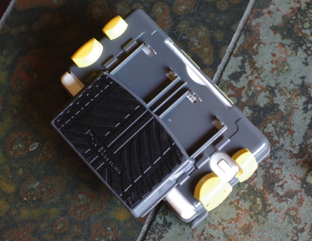 The case is made of a rubber material ensuring any bumps on the top case are absorbed by Bumblebee’s armor. The bottom case includes a slide-out game cartridge drawer made of a heavier plastic so you’re covered where it matters most. But the hinge can be vulnerable to scratches or a drop.