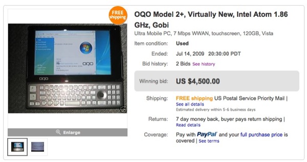 Man, I wish I had crazy money like the OQO fanboy that spend $4,500 on a used, but still unreleased, OQO model 2+. I mean, it only makes sense to spend that kind of money on a device that is only marginally better than a Viliv X70 thanks to the physical keyboard and double the RAM.