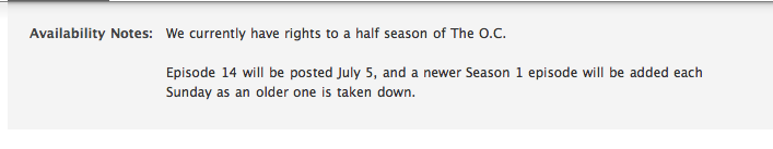 If I can’t begin watching a show from the start, the odds of me watching it at all plummet. Sure, I could probably buy the first season on iTunes, but I’m not likely to pay for TV unless I’m quite certain I’m going to like it. Studios should be doing everything they can to introduce Hulu users to new shows during these summer months, perhaps going as far as enabling access to a show’s entire first season. Yes, I might wind up skipping buying the first season on DVD, but I’m also far more likely to go out and buy seasons 2-3 so I can continue watching from the comfort of my couch.