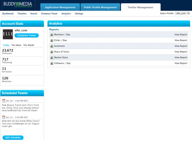 Buddy Media’s Twitter Management System will let marketers measure and identify Twitter trending topics around a particular brand, related topics and competitors. You can also track performance and trends for a brand and entire industry across Twitter with easy to view data on followers, mentions, and re-Tweets.