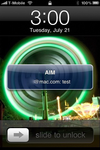 Till Schadde, founder of development house Equinux, has discovered an exploit – a broadcast error, really – that sends your AIM messages to random recipients without your knowledge or consent. The problem seems to happen in unlocked/jailbroken iPhones and results in a alert appearing on a recipients home screen bearing your message.