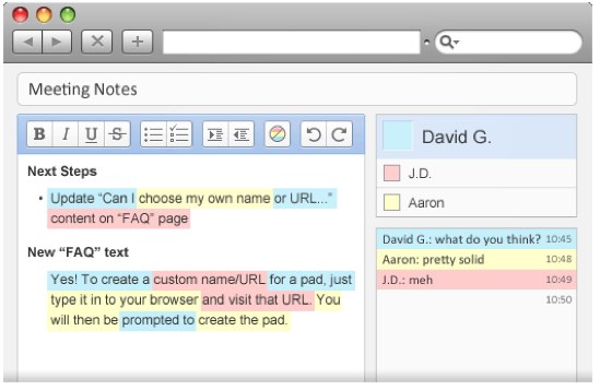 When we first reviewed EtherPad, we found the web-based rival to Google Docs to be sore on the eyes but incredibly useful. What made EtherPad unique from the start was the ability to have multiple people making edits and writing in a document in real-time. You simply create a document, send the link around, and anyone can join. Each user’s edits are highlighted in a different color (with a key featured on the side with which color belongs to each user). Changes are made in absolute real time, something even Google hasn’t been able to do (Google docs update every fifteen seconds). Users can also chat in the sidebar and save versions of documents forever.