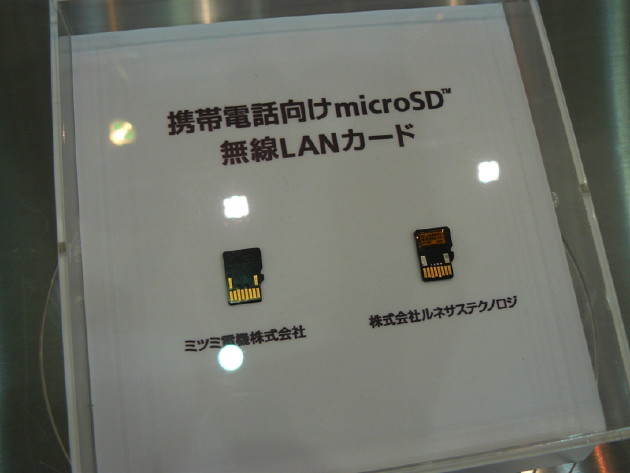 Wireless Japan is currentlying going in Tokyo and KDDI is showing off some impressive wares. The most notable being a Wi-Fi enabled 802.11b/g microSD card. KDDI says that it will boost Wi-Fi performance when mounted to a mobile phone. No word on when these will hit the market.