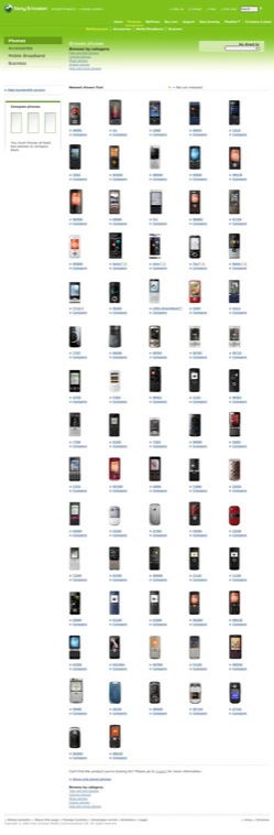 Fosfor posted an incredible look at what has befallen phone manufacturers and why they’re all faltering. Mikael headed over to Nokia and Sony Ericsson’s sites and tried to list all of the models available. Nokia had 44 and S-E had 70. He then points out that there are three iPhones at best and in reality there are only two.