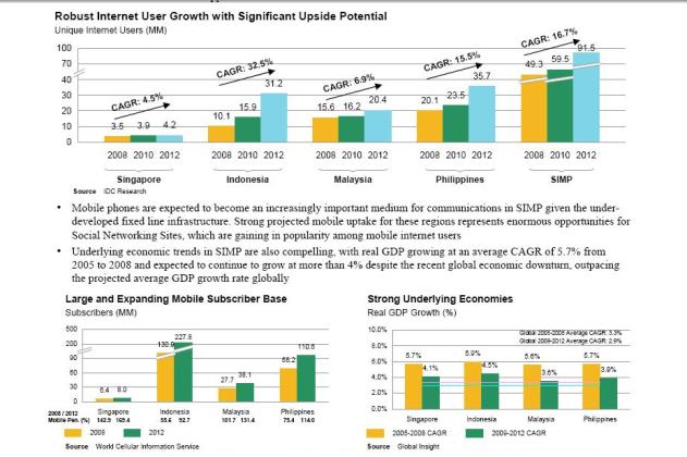 In the summary fact sheet being sent to multiple potentially interested buyers, Friendster claims over 100 million registered users globally and touts its stronghold in the Asian-Pacific region as well as a bright future ahead since a number of its key markets (Singapore, Indonesia, Malaysia, Philippines, aka SIMP) are expected to experience robust Internet user growth over the next few years. The fact sheet also says Friendster attracts over 100,000 new users and 500 million page views on a daily basis, making it a top 20 global website based on user traffic. According to the documents, the company currently has an employee headcount of 105 employees spread out across its global network of offices (Australia, the United States, Philippines and Singapore).